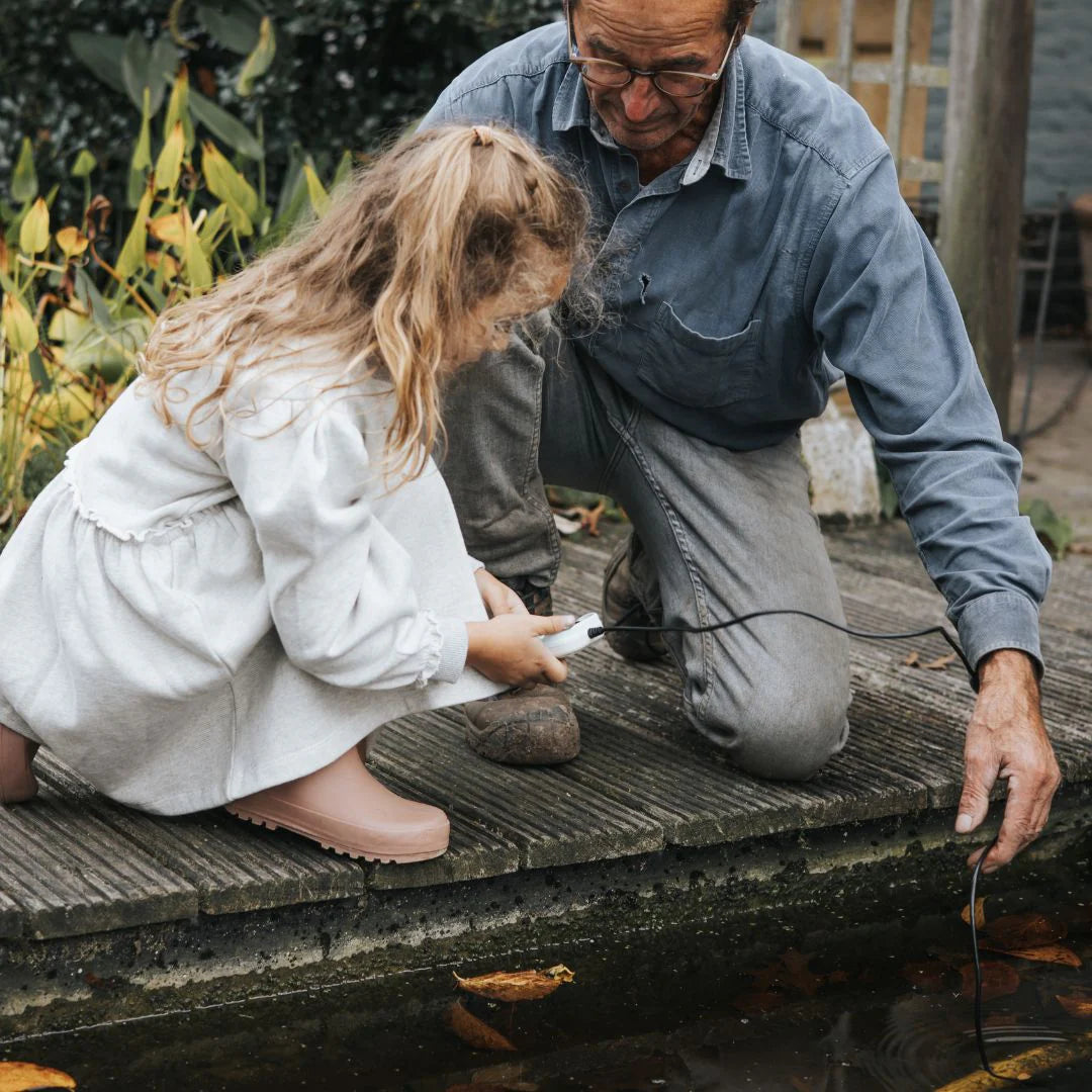 Com um cabo flexível de um metro, luz LED, ecrã integrado e uma câmara na extremidade do cabo, permite às crianças observar a natureza de perto, explorar cantos escondidos ou inspeccionar zonas de difícil acesso.