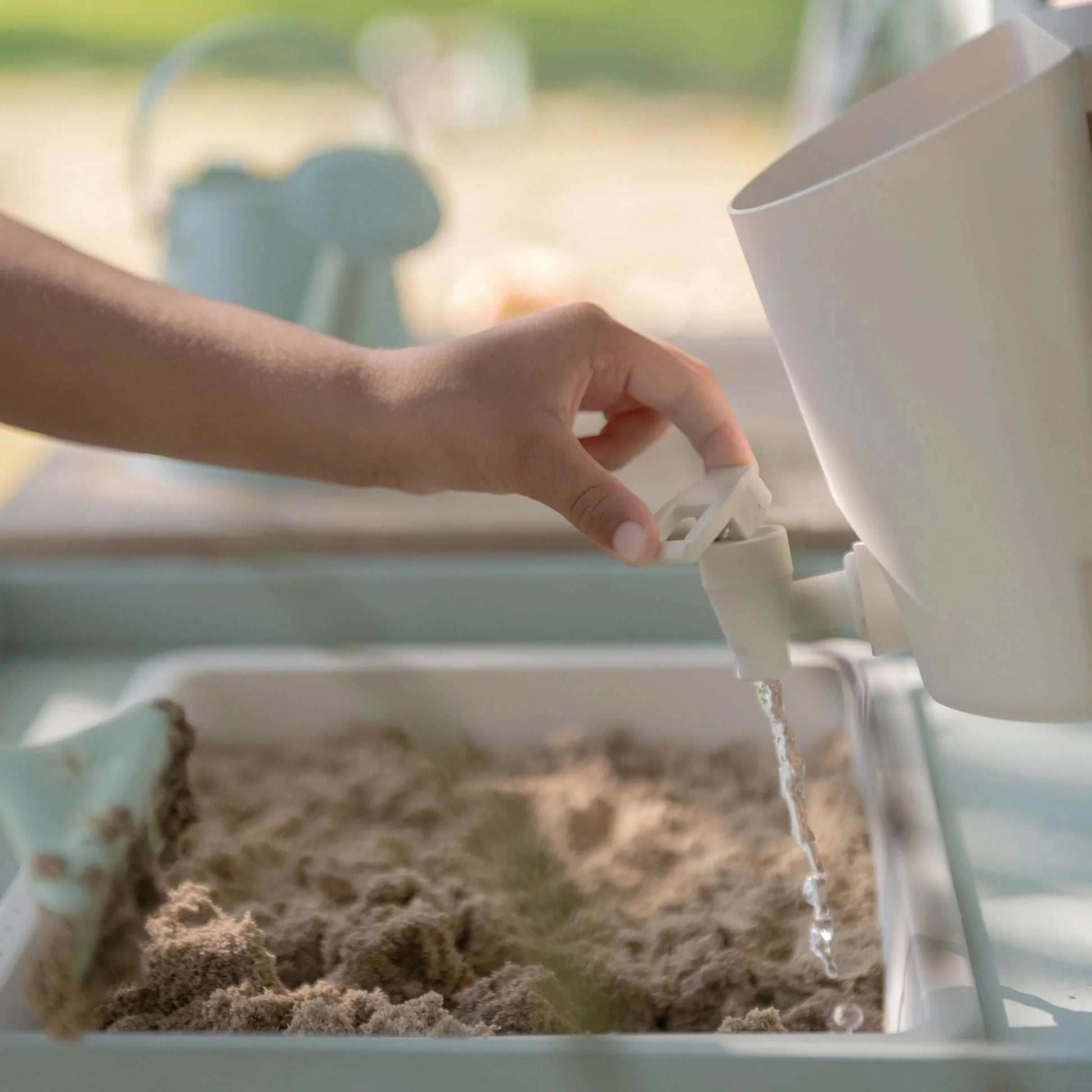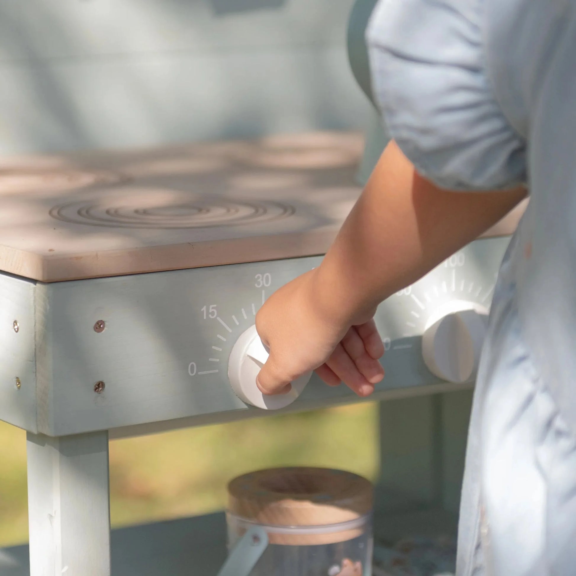 Com botões rotativos, dois lava-loiças e uma torneira real com reservatório, convida a intermináveis brincadeiras de faz-de-conta ao ar livre.