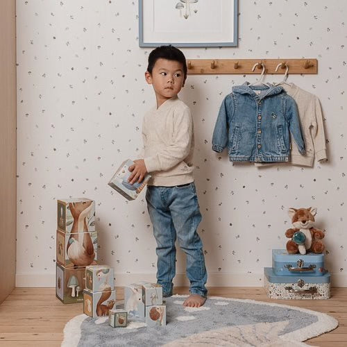Este tapete encantador da Little Dutch, em forma de cogumelo, traz uma atmosfera divertida e acolhedora a qualquer espaço. Com uma base suave em bege e delicados detalhes em azul bosque, parece saído diretamente de um conto de fadas.
