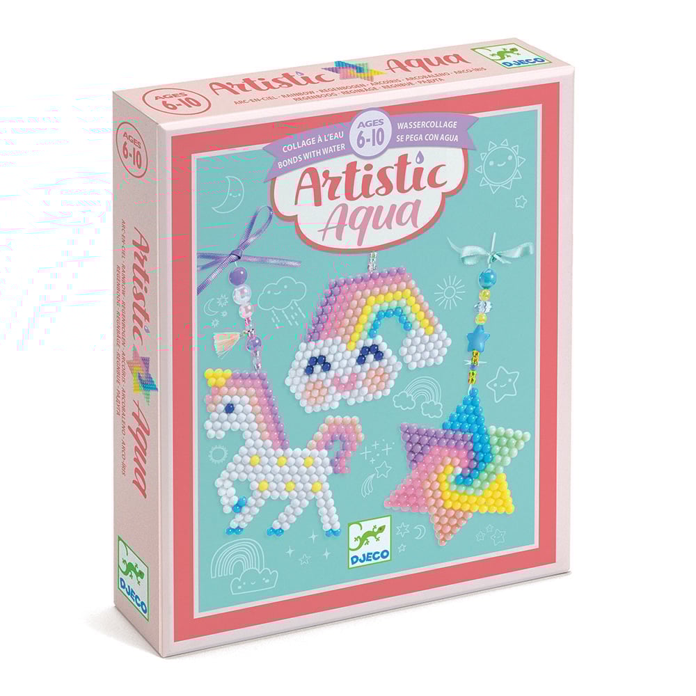 Primeiro, os pequenos artistas criam os seus desenhos ao colocar as contas coloridas na placa perfurada. Depois, basta borrifar com um pouco de água – e magia! As contas colam-se entre si sem necessidade de calor.