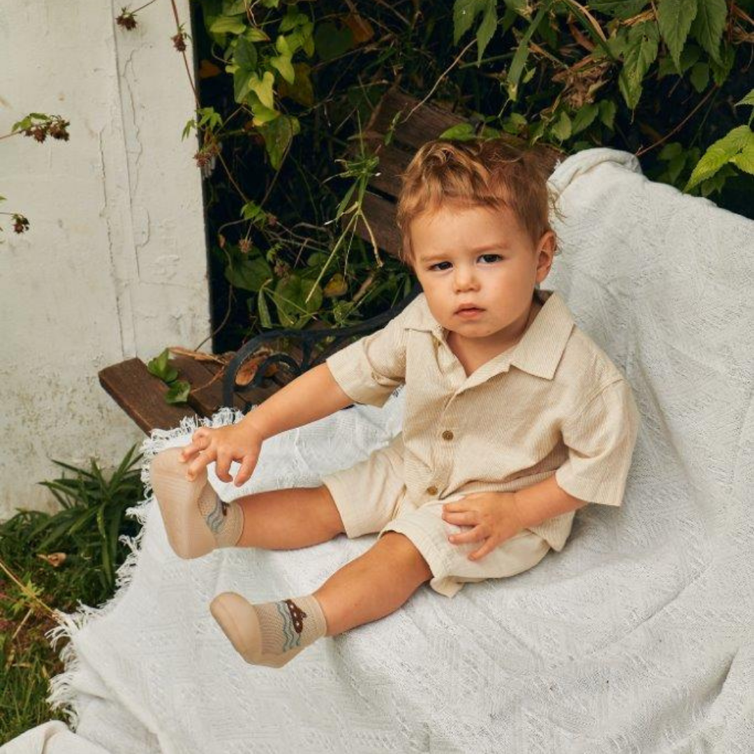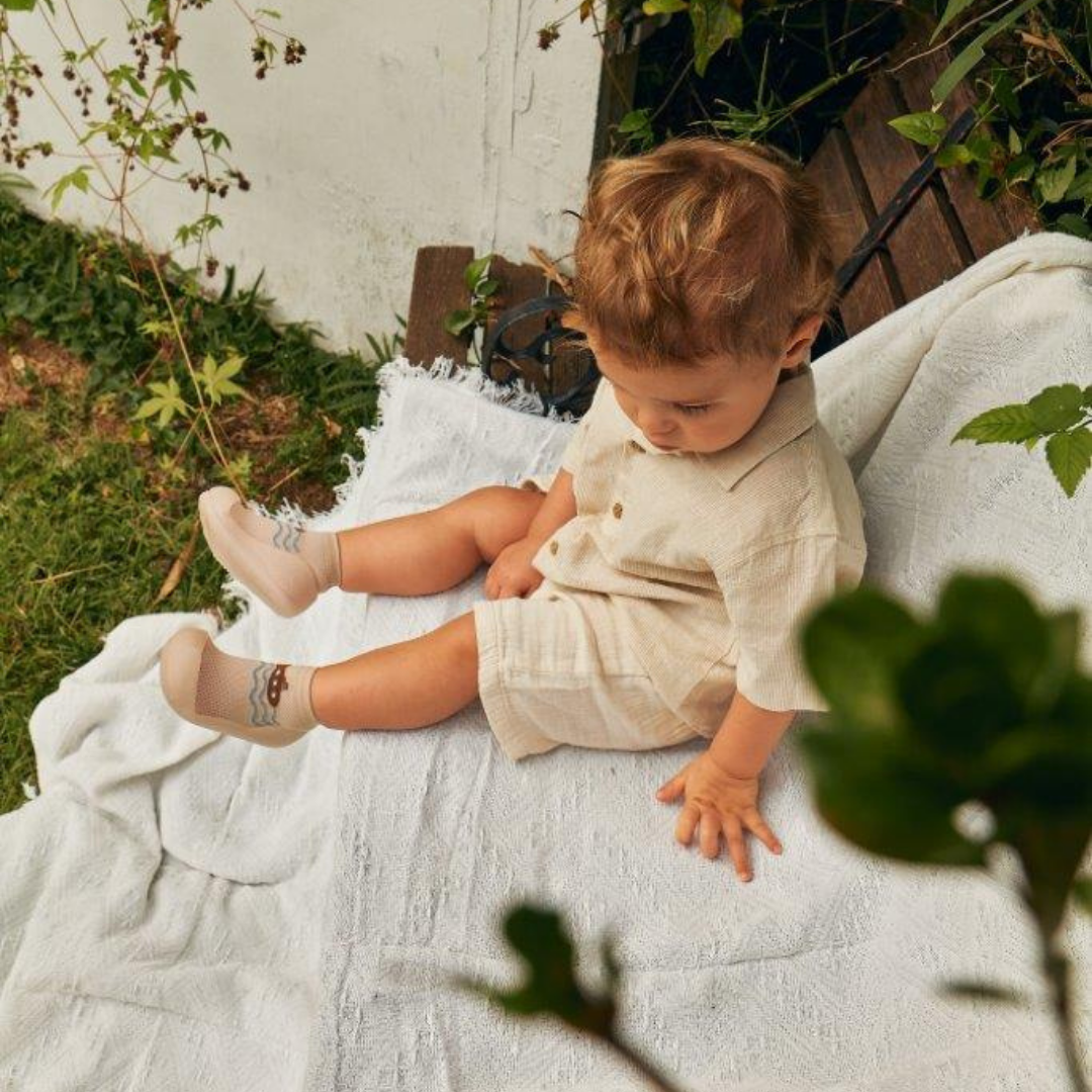 O primeiro passo é medir os pés do seu pequenino. Desenhe o pé numa folha, com o pé em carga, e depois meça a distância desde o calcanhar até ao dedo mais comprido.