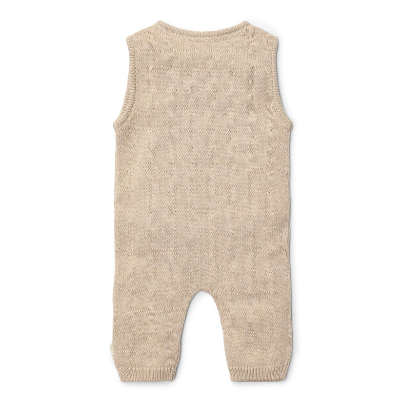 Este macacão de malha, é uma escolha irresistível. Com o seu tom areia mesclado e o subtil efeito de pintas, irradia uma charme natural. A qualidade suave e quente mantém o seu bebé confortável, enquanto os botões com aspeto de madeira adicionam um detalhe divertido a este macacão.