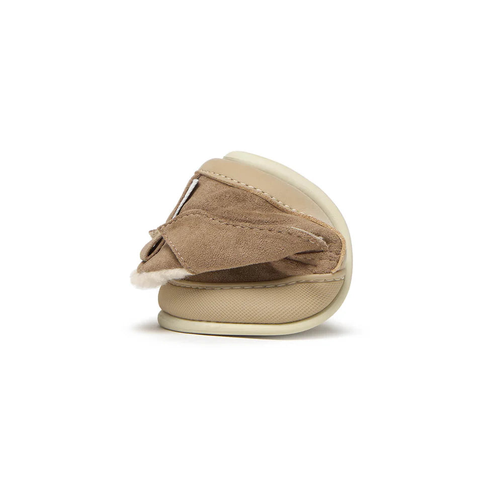 Forro de lã natural. Para um conforto térmico elevado, como se estivesse literalmente entre algodões. A lã mantém a respirabilidade, mas envolve melhor o pé, oferecendo maior isolamento.
