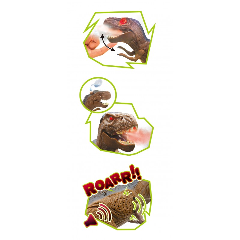 Ele movimenta os membros articulados com realismo e até solta fumo, criando um efeito impressionante que encanta qualquer fã de criaturas pré-históricas.