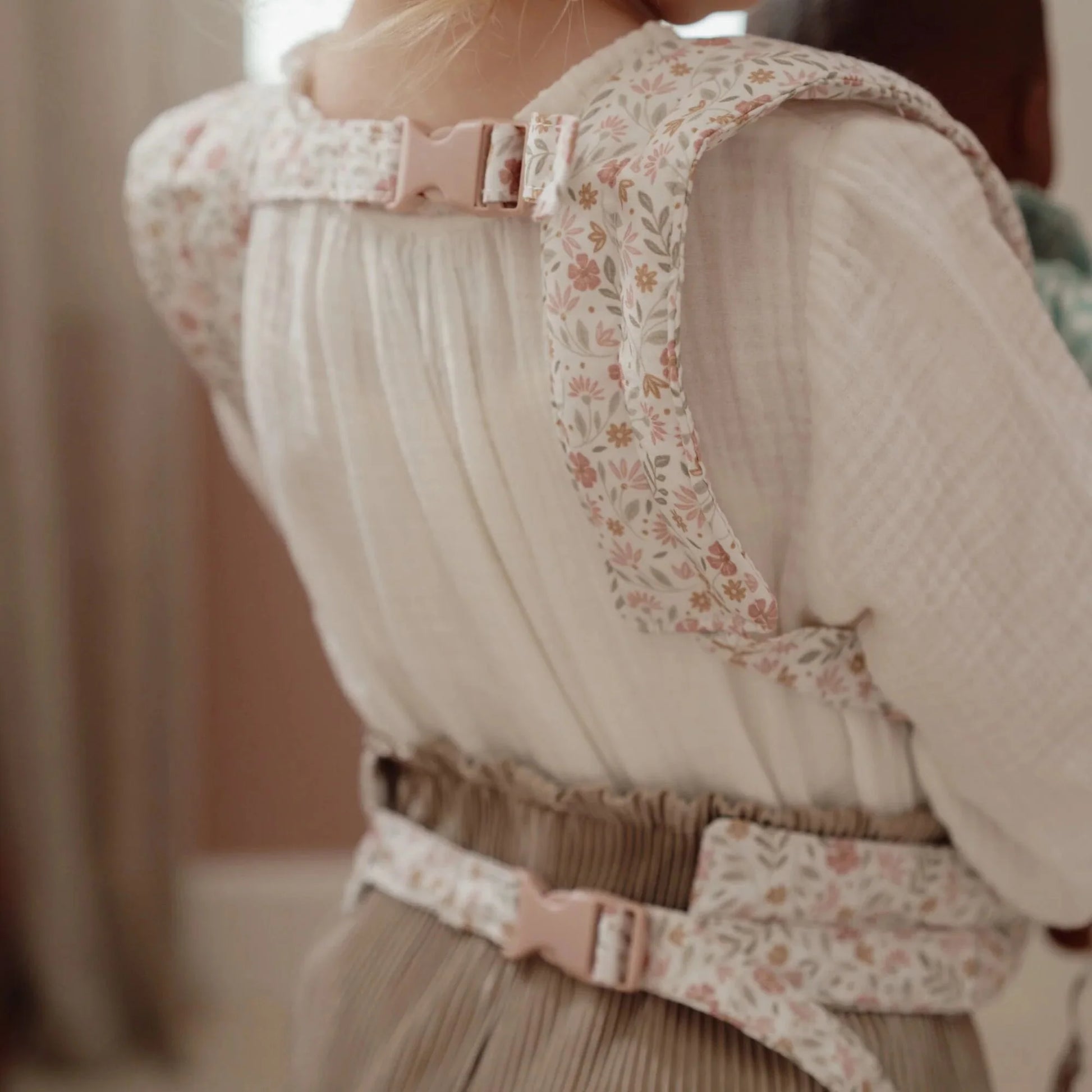Descubra este confortável porta-bonecos e leve o seu bebé de pano consigo para todo o lado. As alças de ombro ajustáveis e acolchoadas, juntamente com o cinto robusto para a anca, garantem que o seu boneco se mantém seguro e bem posicionado. Pode transportá-lo junto ao peito ou virado para a frente, consoante a sua preferência.