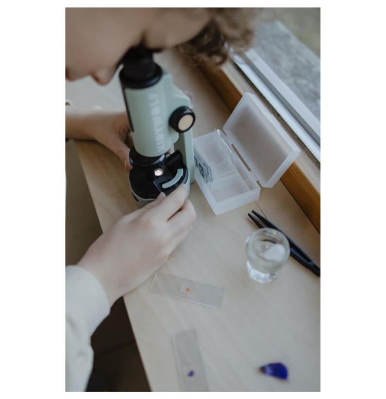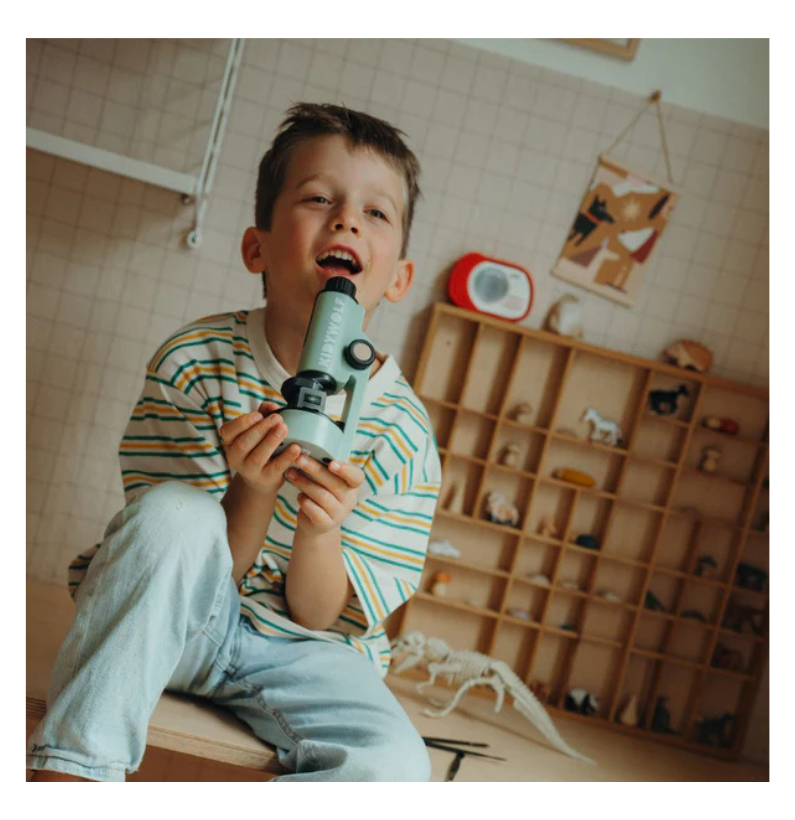 O KIDYMICROSCOPE é o microscópio portátil perfeito para jovens exploradores a partir dos 8 anos. Com ele, cada descoberta transforma-se numa aventura científica divertida e educativa.
