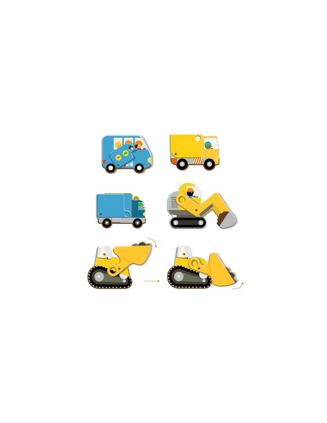 Os veículos são articulados, conferindo ao puzzle um aspeto interativo. O puzzle é feito de cartão grosso, para as crianças o montarem e desmontarem vezes sem conta.