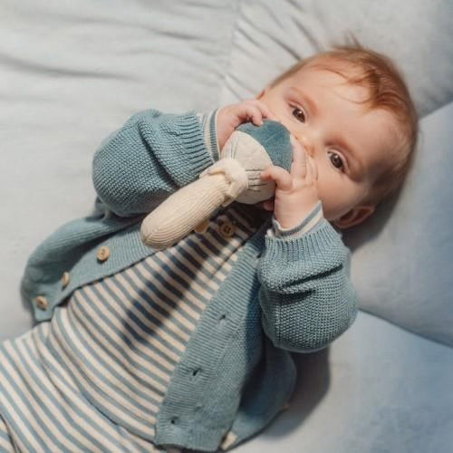 O guizo estimula a coordenação mão-olho, é feito de materiais maravilhosamente macios e pode ser facilmente agarrado pelas mãos de crianças pequenas.