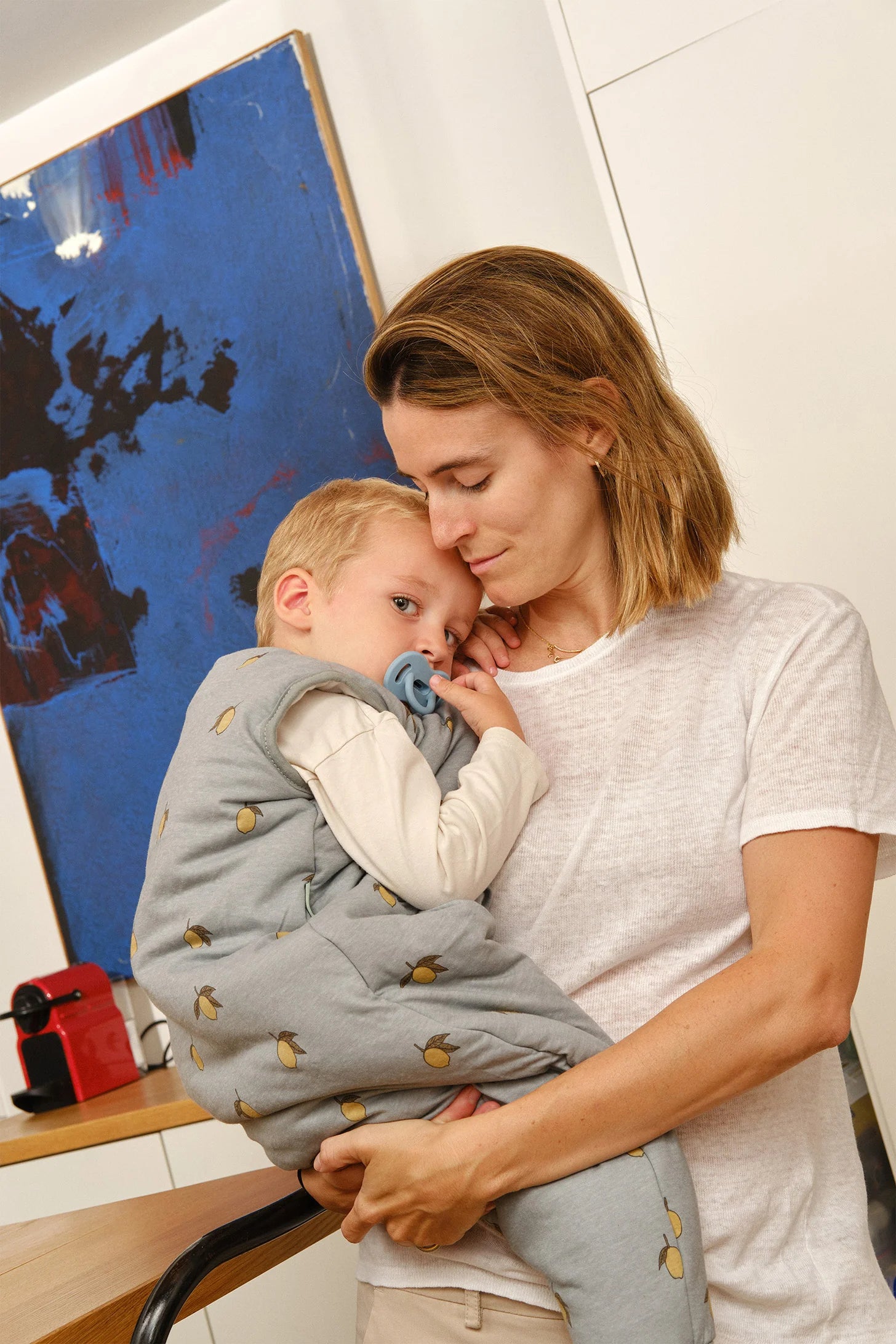 É uma peça de roupa quente desenhada para ser usada por cima do pijama, mantendo o seu filho sempre coberto enquanto dorme, brinca, anda ou gatinha.