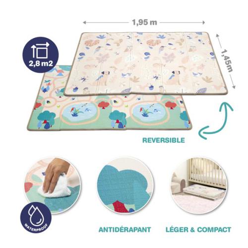 Este tapete de brincar leve e compacto é extremamente fácil de dobrar e guardar na sua capa protetora. Pode colocá-lo debaixo da cama, atrás de uma porta ou num armário.