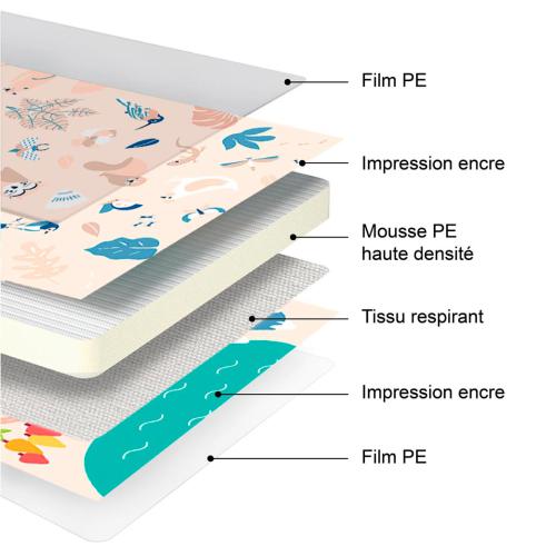 Fabricado em material macio e resistente, aguenta todos os tipos de brincadeiras. A superfície antiderrapante torna-o seguro para o bebé explorar, rastejar e mover-se à vontade.
